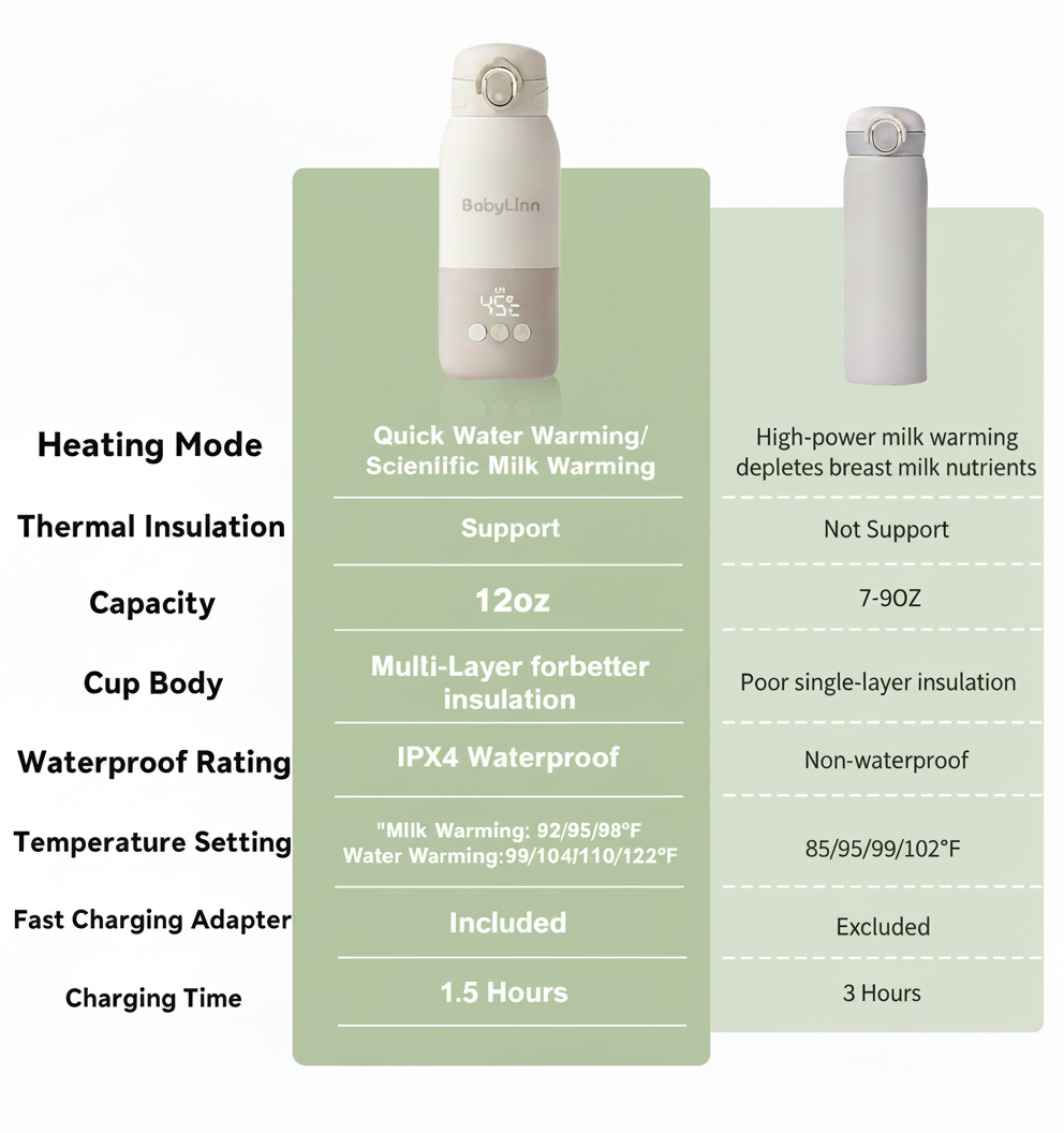 L’eau atteint 40°C en seulement 3 minutes, et le lait maternel réfrigéré est prêt à 37°C en 5 minutes. Idéal pour répondre rapidement aux besoins de bébé.